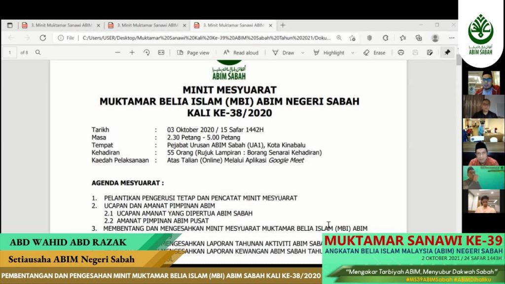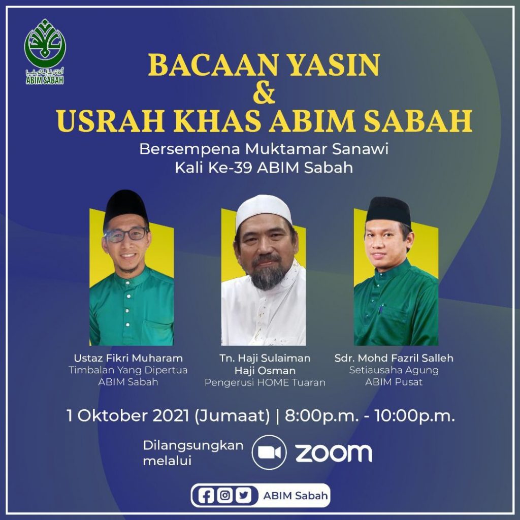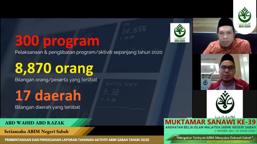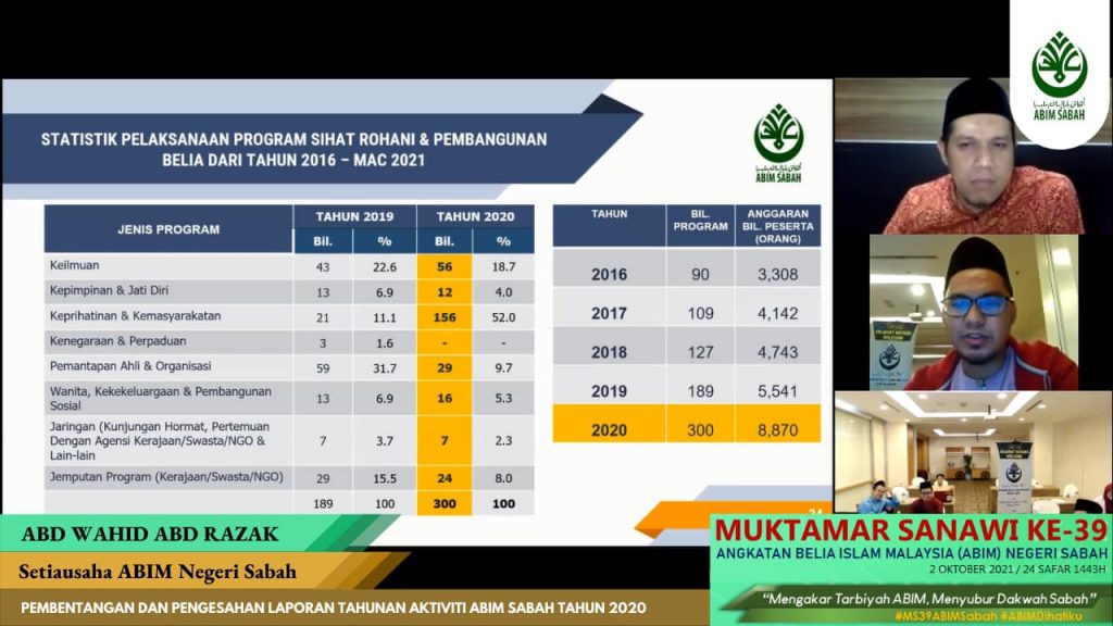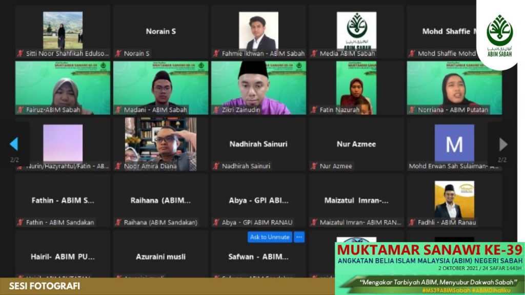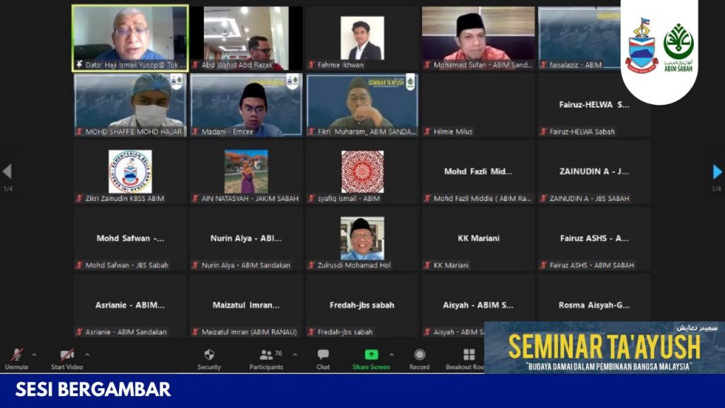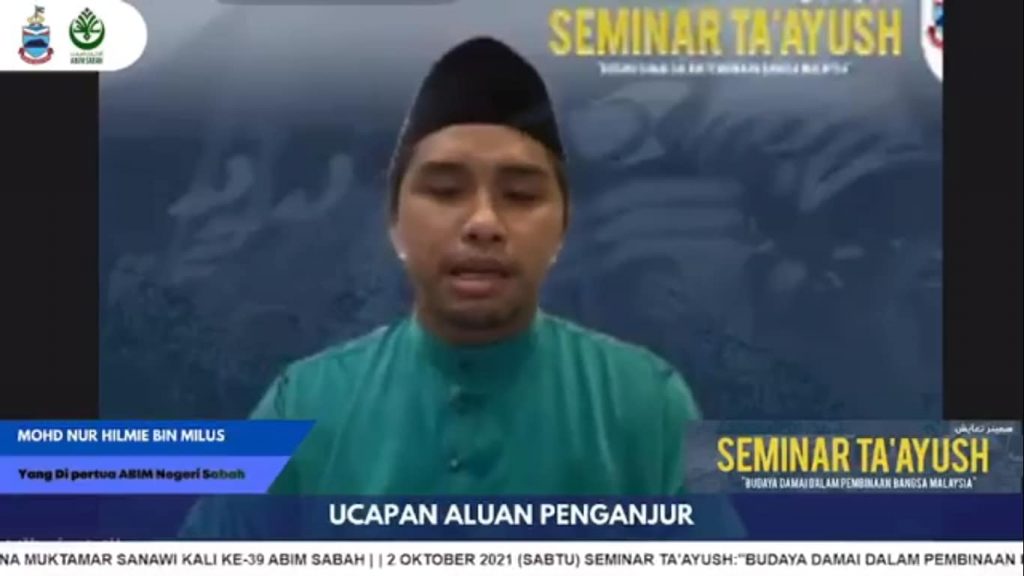 2hb Oktober 2021 – Alhamdulillah, seramai 70 orang peserta telah menyertai Seminar Ta’ayush yang telah diadakan bersempena Muktamar Sanawi Ke-49 ABIM Sabah secara dalam talian maya menggunakan aplikasi Zoom Meeting dan telah dirasmikan oleh YB. Datuk Haji Mohd Arifin Haji Mohd Arif, Menteri Tugas-Tugas Khas Negeri Sabah.