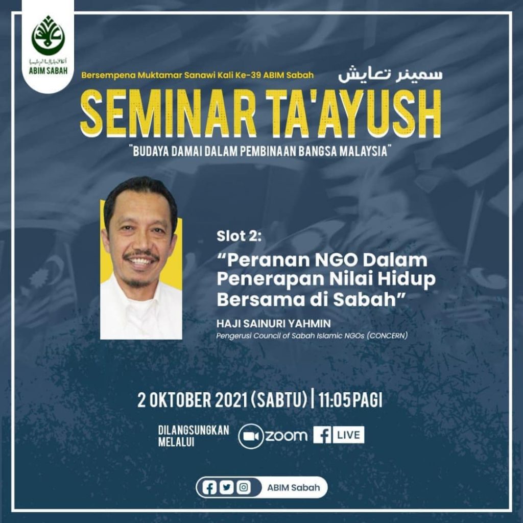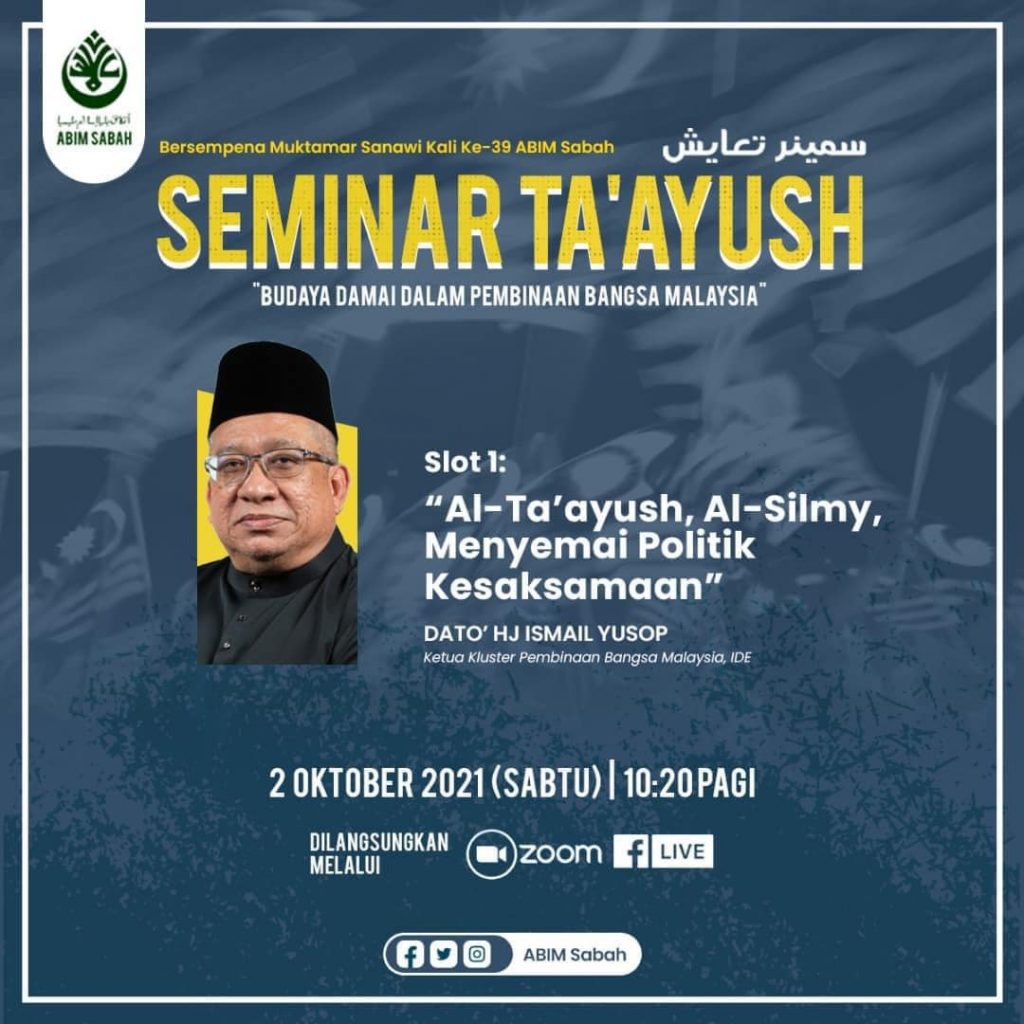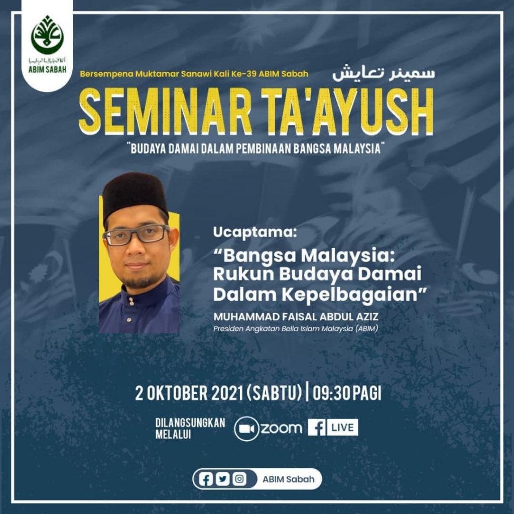 Sehubungan dengan itu, atas dasar prihatin dan semangat patriotisme, ABIM Sabah terpanggil untuk menganjurkan “Seminar Ta’ayush: Budaya Damai Dalam Pembinaan Bangsa Malaysia”.