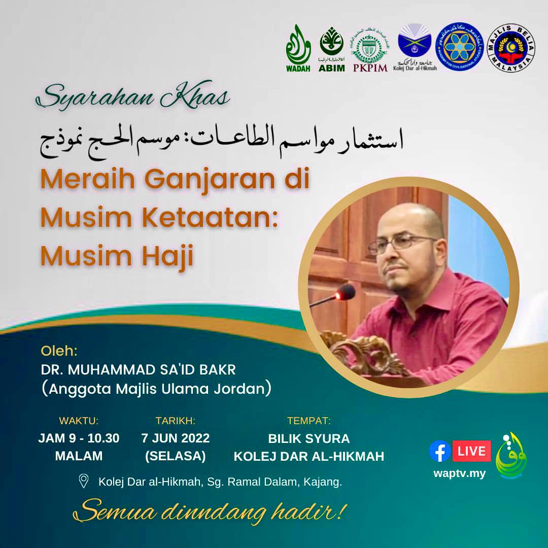 Ya Ma’shar al-ShababSyarahan Khas Dr. Muhanna Alhubail (Kanada) زمان اليقظة: مراجعات نقدية في الفكر السلامي المعامر“Zaman Kesedaran: Retrospeksi Pemikiran Islamis” 📆 Tarikh:09 Jun 2022 (Khamis) ⏰ Masa:09:00 malam – 10:30…