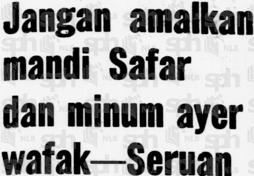 Pada 9hb Julai 1963, Berita Harian melaporkan Timbalan Mufti Johor, Dato’ Dr. Abd. Jalil Hassan menyatakan yang upacara-upacara tu adalah ‘bidaah dan tak masuk akal’. Mufti Singapura turut mengeluarkan fatwa bahawa Mandi Safar adalah haram kerana berunsur syirik.