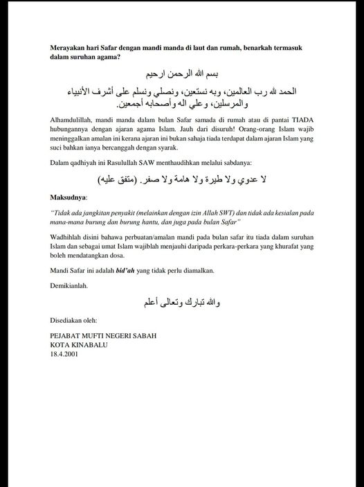 Fatwa serta Langkah Pengharaman Mandi Safar