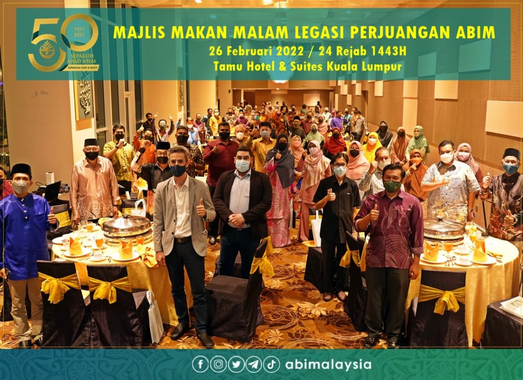 The President and Members of the Working Committee of the Muslim Youth Movement of Malaysia (ABIM) would like to express their deepest appreciation and thanks to Y.Bhg Datuk/Datin/Tuan/Puan for taking the time to attend the Legacy of ABIM Dinner on the 26th of February 2022 / 24 Rejab 1443H, at Tamu Hotel & Suites Kuala Lumpur – your presence honoured us greatly. May Allah Subhanahu wa-Ta’ala bless our efforts and our collaboration.