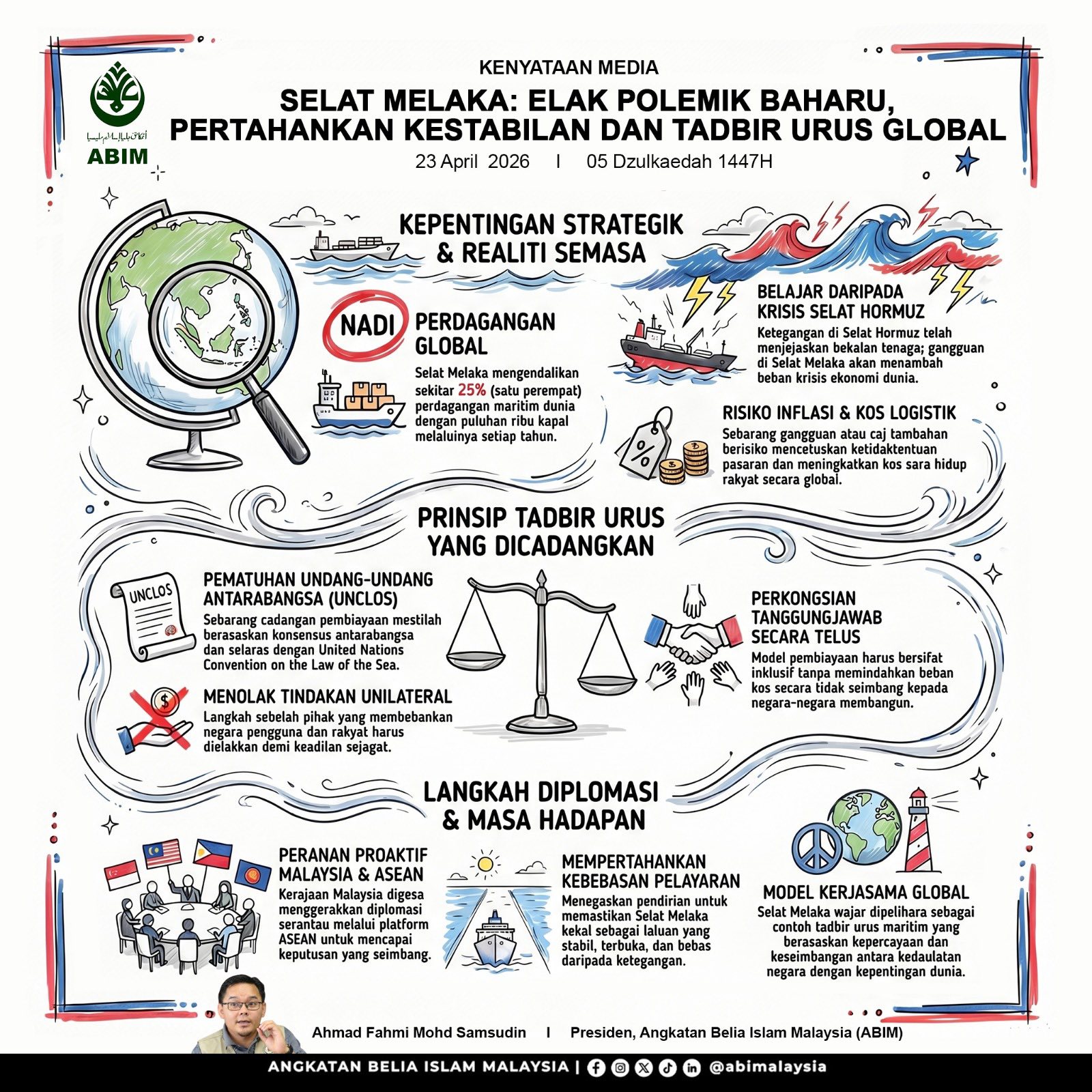 Justeru tatkala arus Islamophobia kembali mewarnai landskap geo-politik pada saat dan detik ini, para pemimpin dan ulama’ harus tampil dengan penuh wibawa menyampaikan mesej Islam sebagai Rahmat lil ‘Alamin , agama yang rahmatnya menyinari dan menyirami seluruh jagat raya meliputi manusia dan seluruh alam kejadian. Islam ialah agama ‘ramah-tamah’ yang mendamaikan, bukan agama ‘marah-marah’ yang hanya menghukum. Inilah agenda penting yang sedang digerakkan secara aktif oleh ABIM melalui penganjuran gerak kerjanya di segenap peringkat, baik di dalam mahupun luar negara.
