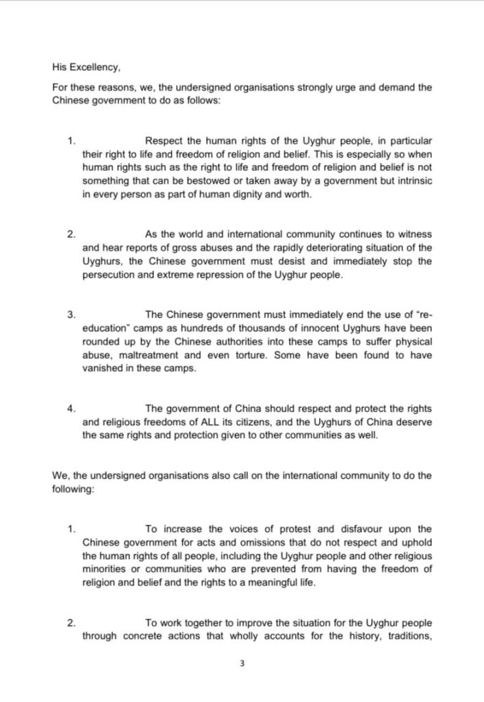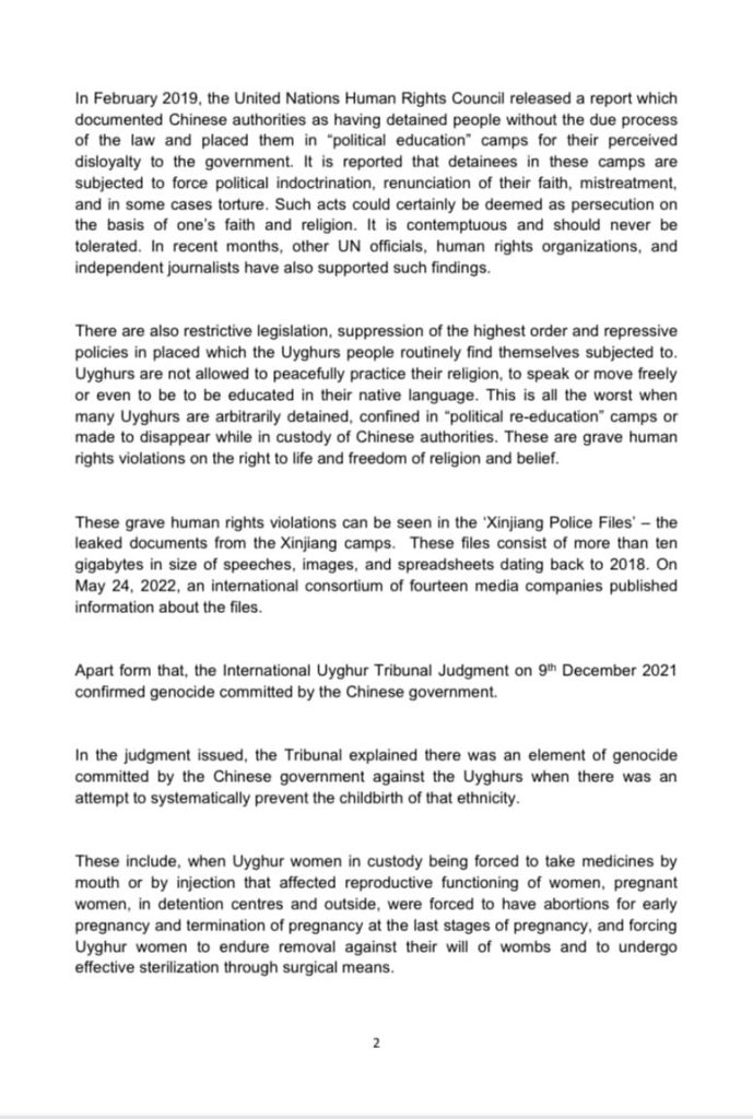 2. As the world and international community continues to witness and hear reports of gross abuses and the rapidly deteriorating situation of the Uyghurs, the Chinese government must desist and immediately stop the persecution and extreme repression of the Uyghur people.