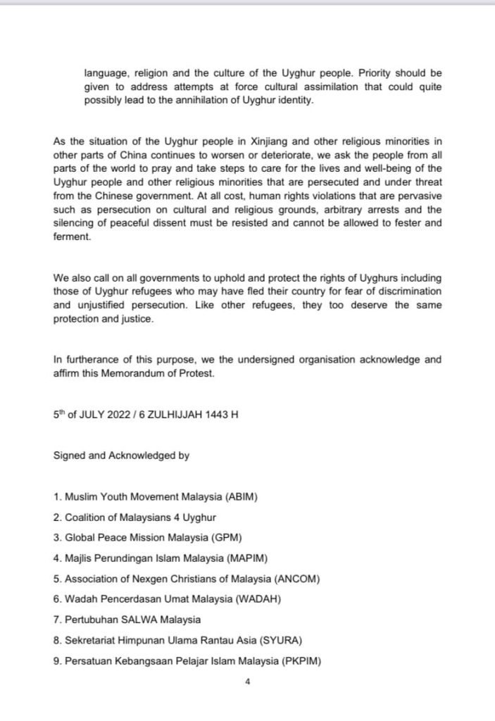 We also call on all governments to uphold and protect the rights of Uyghurs including those of Uyghur refugees who may have fled their country for fear of discrimination and unjustified persecution. Like other refugees, they too deserve the same protection and justice.