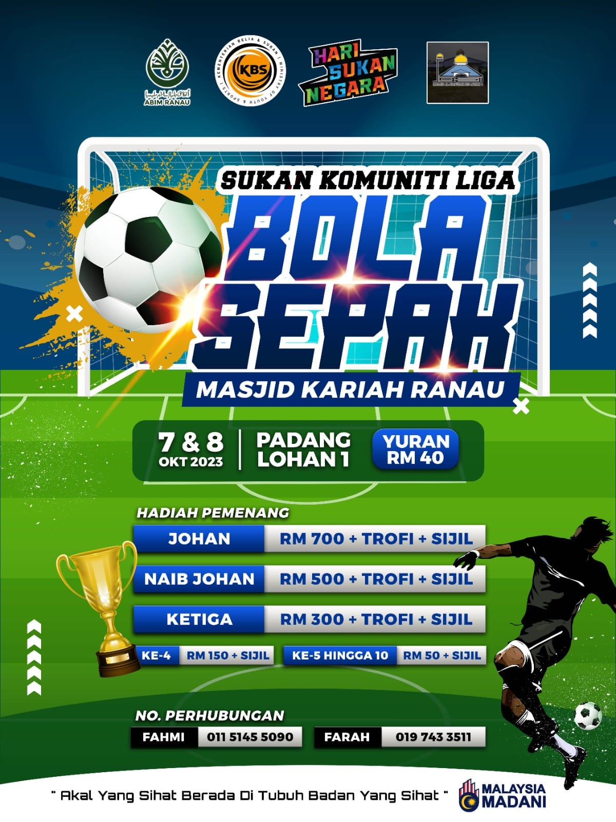 HEBAHAN SUKAN KOMUNITI LIGA BOLA SEPAK MASJID KARIAH RANAU Sukacita dimaklumkan bahawa bersempena Hari Sukan Negara, ABIM Ranau akan menganjurkan Pertandingan Liga Bola Sepak Masjid Kariah Ranau. Sehubungan dengan itu,…