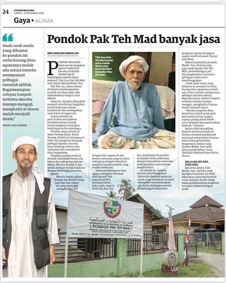 Beliau yang lebih dikenali sebagai Tuan/Tok Guru Pak Teh Mad, 96, merupakan pengasas Pondok Ahmadiah Kuala Nerang (Pondok Pak Teh Mad) dan Maktab Mahmud Padang Terap. Dilahirkan pada 16hb November 1925 di Kampung Tanjung, Mukim Padang Terap, Almarhum membangunkan pondok tersebut pada 1961 sekembalinya berguru dari Makkah.