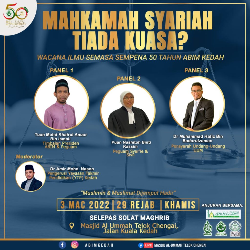 WACANA ILMU SEMPENA 50 TAHUN ABIM KEDAH: Benarkah Mahkamah Syariah tiada kuasa?