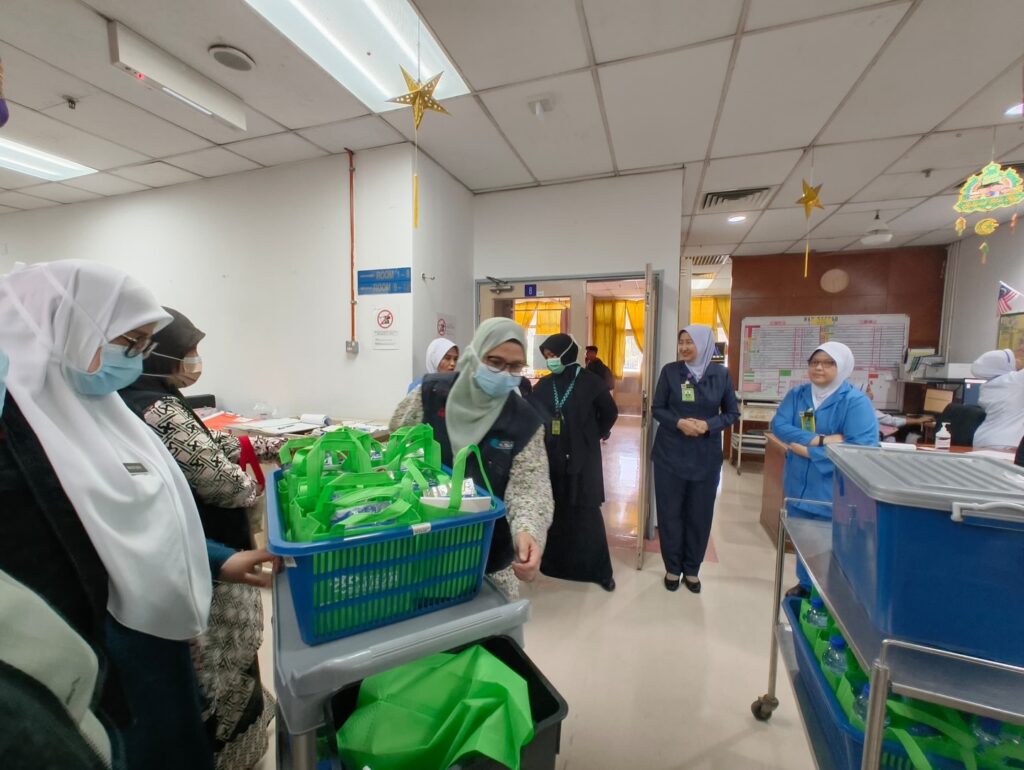 Seramai 28 orang pesakit telah disantuni bersama agihan pek kit ibadah serta buku panduan ibadah ketika sakit.